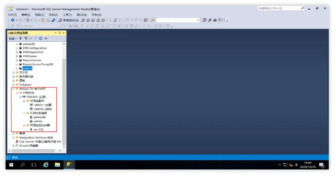 最后在Microsoft SQL Server Management Studio添加配置可用性组,SQL Server Always On高可用就配置完成了。
