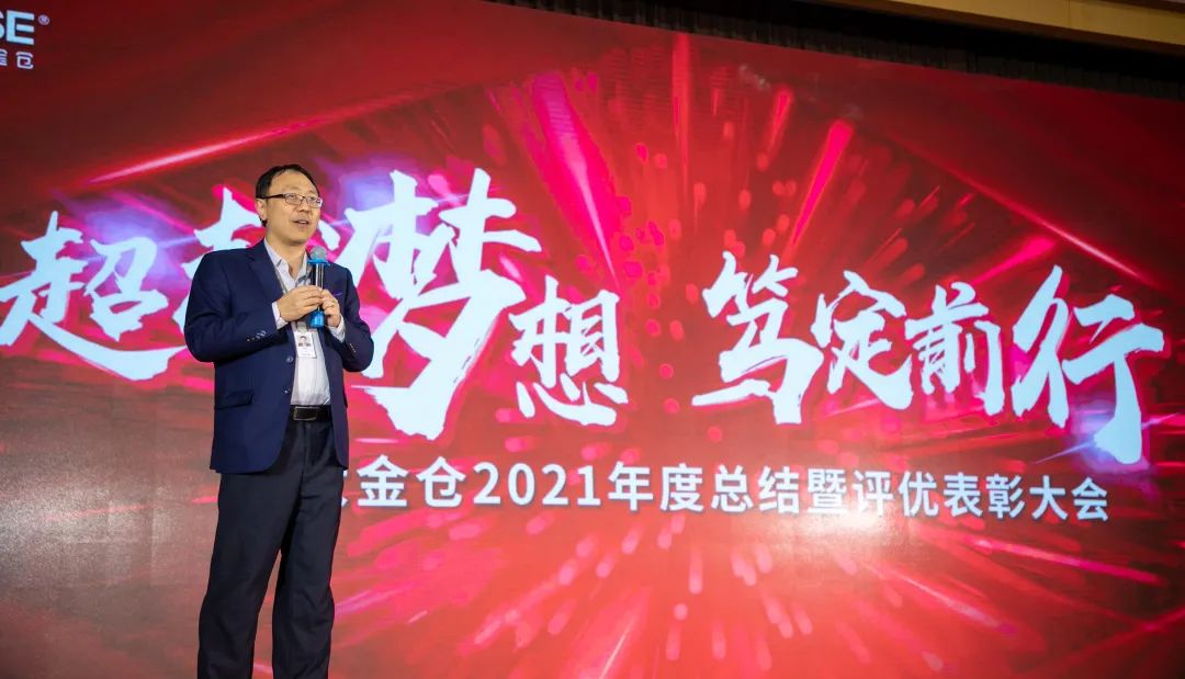 在热烈的掌声中,人大金仓总裁杜胜开启年度总结: