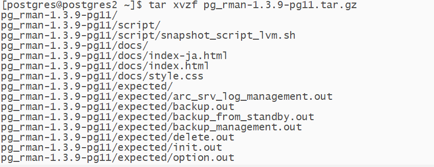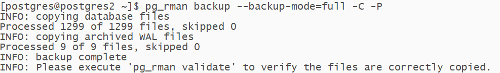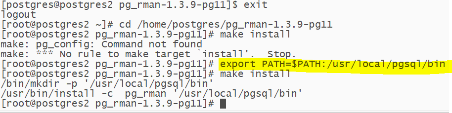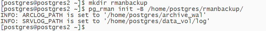 [postgres@postgres2~]$ export BACKUP_PATH=/home/postgres/rmanbackup