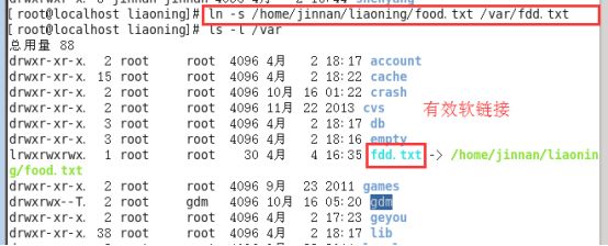 ③原文件 被删除,对应的软链接就变为“无效链接”,如果再创建一个同名原文件,软链接又恢复为有效链接文件。