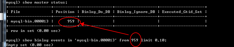 SHOW BINLOG EVENTS [IN 'log_name'] [FROM pos] [LIMIT [offset,] row_count]
