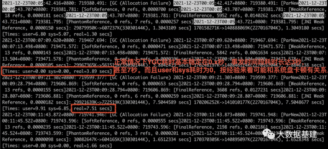 2022-01-17T14:51:26.616+0800: 2061.131: [GC (Allocation Failure)2022-01-17T14:51:26.617+0800: 2061.131: [ParNew2022-01-17T14:51:27.115+0800: 2061.630: [SoftReference, 0 refs, 0.0000930 secs]2022-01-17T14:51:27.115+0800: 2061.630: [WeakReference, 156 refs, 0.0000494 secs]2022-01-17T14:51:27.115+0800: 2061.630: [FinalReference, 1348 refs, 10.2301307 secs]2022-01-17T14:51:37.345+0800: 2071.860: [PhantomReference, 0 refs, 95 refs, 0.0000758 secs]2022-01-17T14:51:37.346+0800: 2071.860: [JNI Weak Reference, 0.0000177 secs]: 52844281K->5134129K(53476800K), 10.7291830 secs] 90304049K->43584416K(172316096K), 10.7294849 secs][Times: user=20.36 sys=0.17, real=10.73 secs]