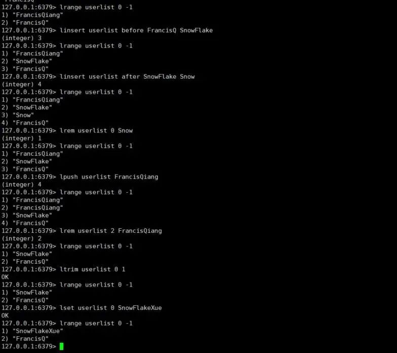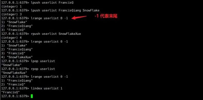 lindex key index 获取指定索引的元素 O(n) 谨慎使用