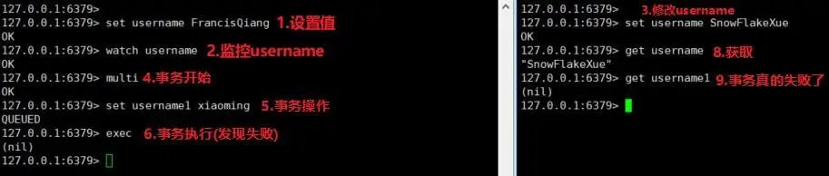 watch key 在事务开始前监控某个元素,如果在提交事务的时候发现这个元素的值被其他客户端更改了则事务会运行失败。