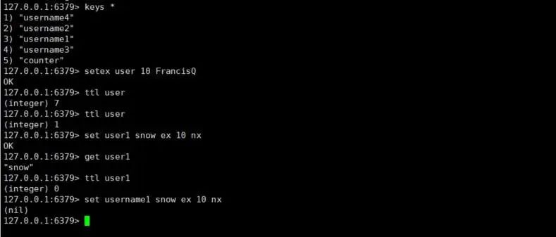 setnx key value 如果不存在该key则可以设置成功,否则会失败,加上过期时间限制,则是redis实现分布式锁的一种方式(后面会提到)。