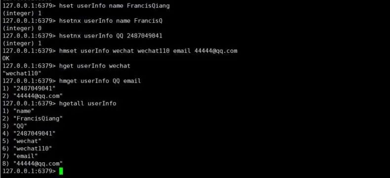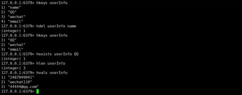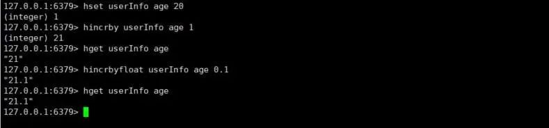 hincrby key field increValue 增加某个 value 的值(也可以增加负数)