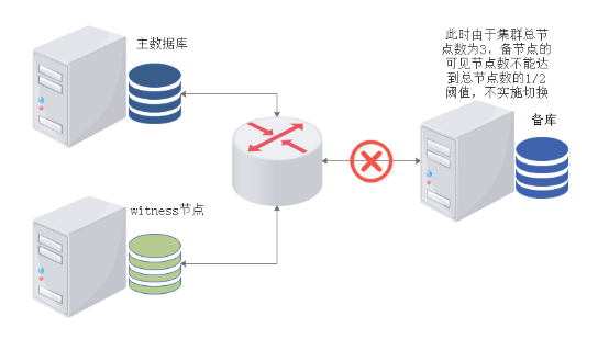 通过设置witness节点可以针对主库与备库之间切换的检查完整性,即辅助备节点监控程序实施主节点网络可见性检查,避免因网络问题导致的脑裂现象。