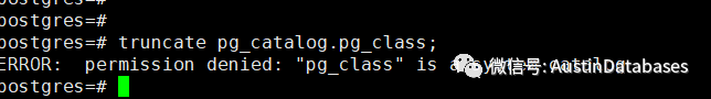 即使你拥有初始的最大的权限,PG 的核心表,你也是没有权利去删除他的。