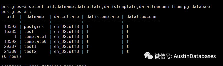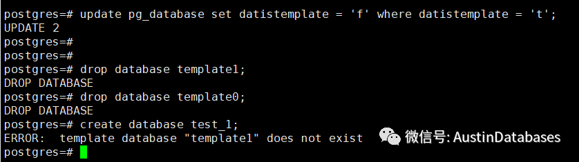当然有人说,你删不掉 template1 template0 两个数据库,因为删除的时候回报,他们是模板数据库,不能删除。