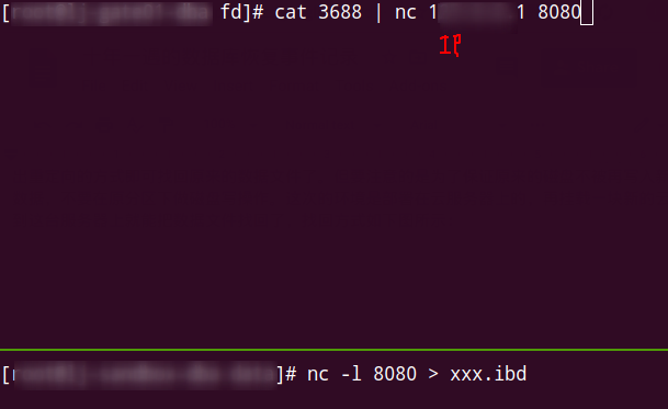 如果读者使用的是自己的笔记本,可以插一块 U 盘或移动硬盘,将数据拷贝到 U 盘或移动硬盘;如果使用的是物理机可以考虑使用管道给 netcat 命令把数据文件传输到另外一台服务器。如下图所示: