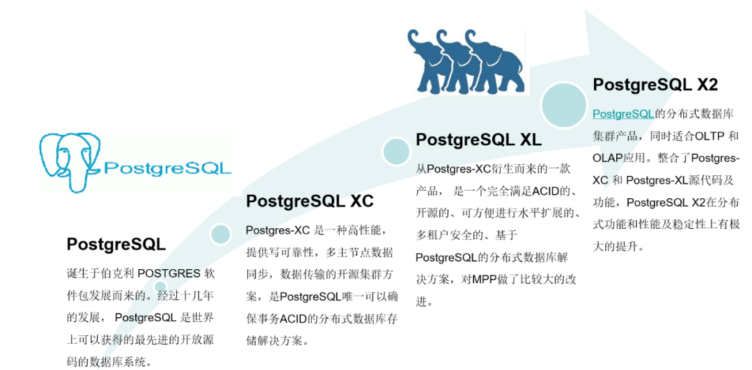 PostgreSQL 的历程也是如此,从 PostgreSQL 内核开始,也经历了 OLTP 分支、OLAP 分支,再到大势所趋,两者重新融合,往混合 OLA/TP 的分布式数据库方向演进。