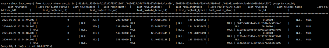 多个车辆的最新位置数据查询,依旧使用超表结合标签进行查询,