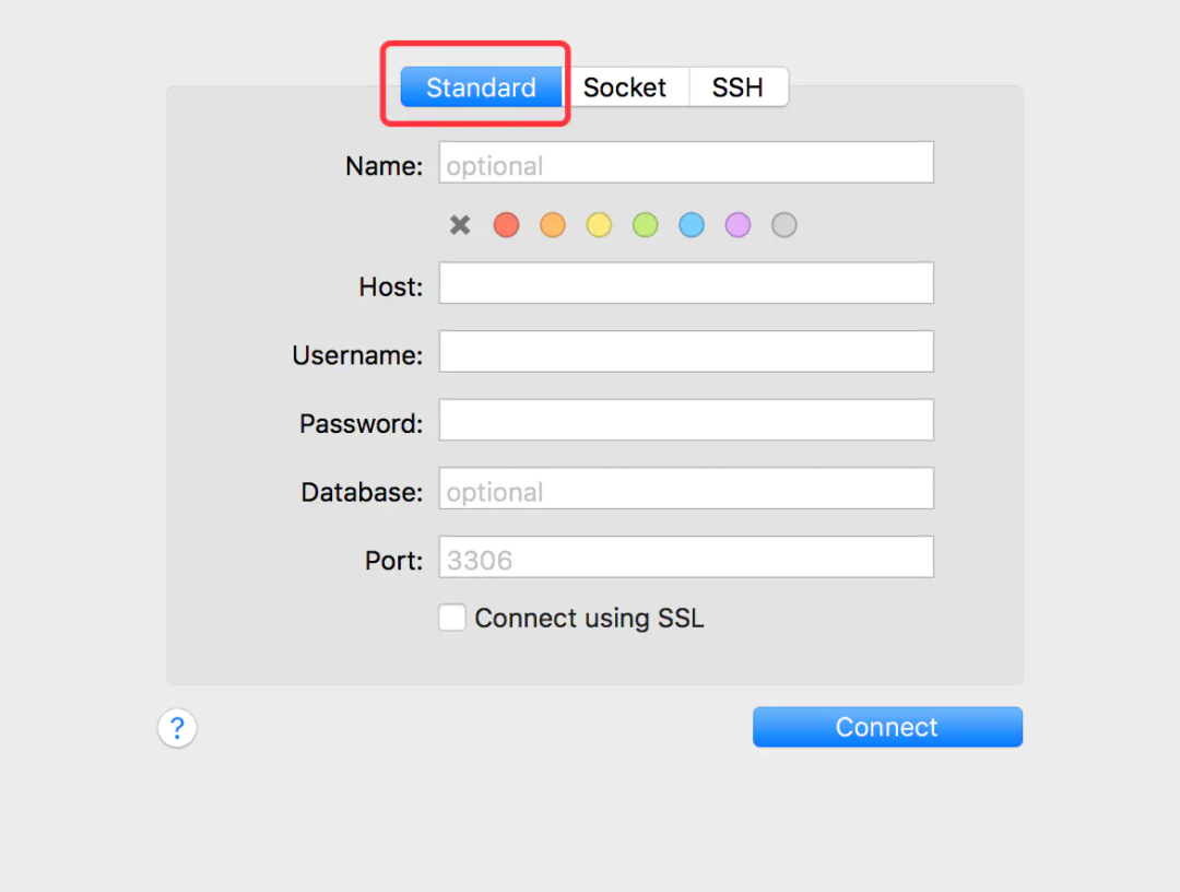 Sequel Pro提供了3种连接方式,standard/socket/ssh。