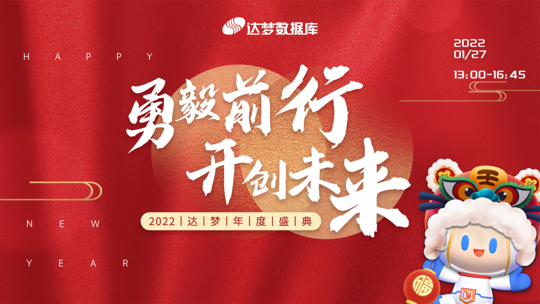 1月27日,武汉达梦数据库股份有限公司(以下简称『达梦数据』)2022年度盛典顺利举办! 『 勇毅前行 开创未来 』是本次盛典的主题,也是对达梦2021年成就的高度概括,而这种成就来自每一位达梦人。今天,来自武汉、北京、上海、苏州、成都、广州等全国各地的达梦人云端相聚,在达梦数据高级副总王婷的主持下共庆盛会、欢度此刻!