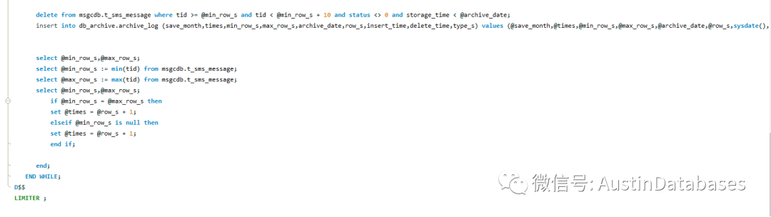 delete from msgcdb.t_sms_message where tid >= @min_row_s and tid < @min_row_s + 1000 and status <> 0 and storage_time < @archive_date;