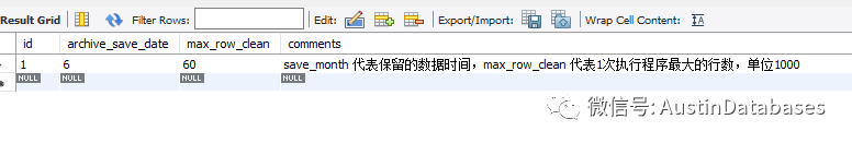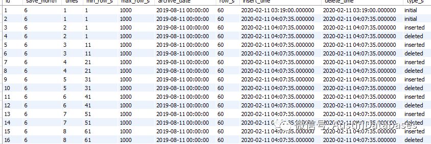 2 设计配置表的主要原因是对于非IT 人员,例如project manager 或者其他的人员,也可以调整归档的时间,例如 archive_save_date 的数字就是保留多少月的数据,max_row_clean,就是当前的数字 *1000 就是每天最大的归档数据量。通过这两个参数双重限制每天的归档的数据量,避免归档的时间太长,影响了备份,或其他操作。而日志表本身就是一个查看归档成功失败的东西,其中的type_s 就是表现数据归档操作状态的东西,通过日志表可以反映归档多少数据,每次操作消耗的时间,以及当前操作获取的系统变量是什么,方便出现故障时,查看到底归档的数据少不少,或者大致可能出现问题。