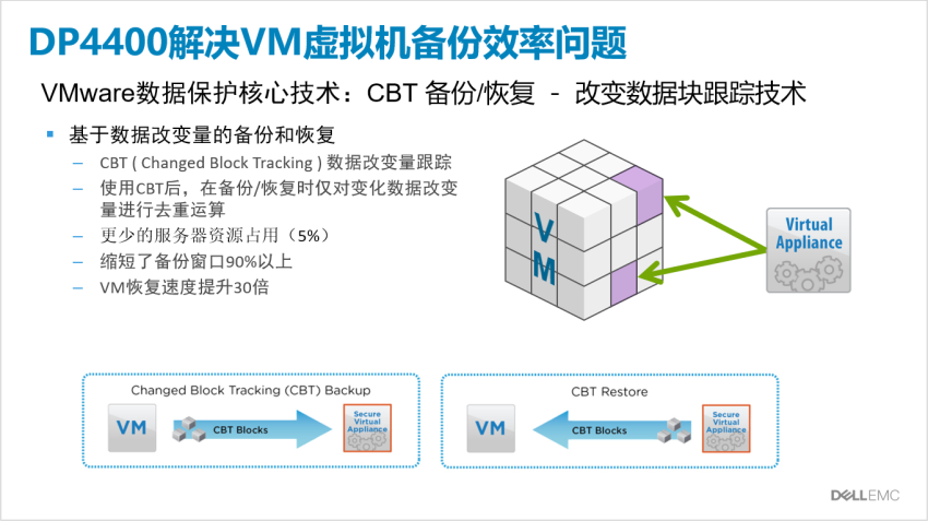 而有了DP4400一体机这个VMware虚拟化环境数据保护利器,一体机快速交付,项目进度有保证;备份和恢复管理还简单,只需点击几下鼠标轻松搞定;尤其它基于专利的重删压缩技术所实现的备份空间节省和备份性能加速更是业界翘楚。还有……