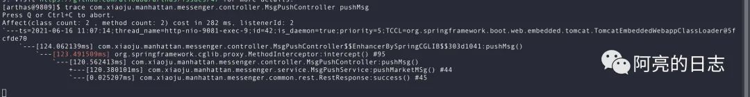 的trace命令定位到耗时较长的接口,然后可以逐步往下跟踪找到对应的方法,进行优化。