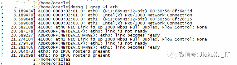 [root@edbjr2p2 ~]# dmesg | grep -i etheth0: no IPv6 routers presentprocess `sysctl' is using deprecated sysctl (syscall) net.ipv6.neigh.eth0.base_reachable_time; Use net.ipv6.neigh.eth0.base_reachable_time_ms instead.eth0: no IPv6 routers presenteth0: no IPv6 routers presenteth0: no IPv6 routers present