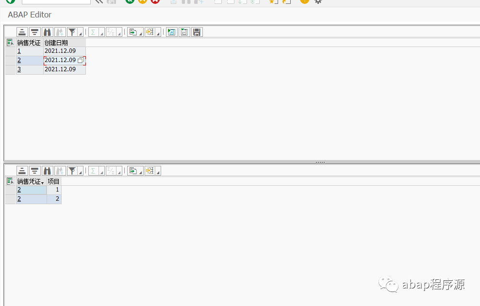 双击第一个alv的销售订单来过滤出第二个alv的销售订单行项目,double_click方法也已经进行代码封装,e_data就是当前双击行的内容
