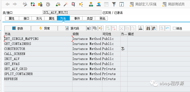 而且,已经将alv的事件类继承进去,只需要在代码中创建一个cl_alv_event(必须要是这个名字,因为后边会从堆栈中查找该子类)的事件子类即可,通过类的属性objid来控制区分是第几个alv