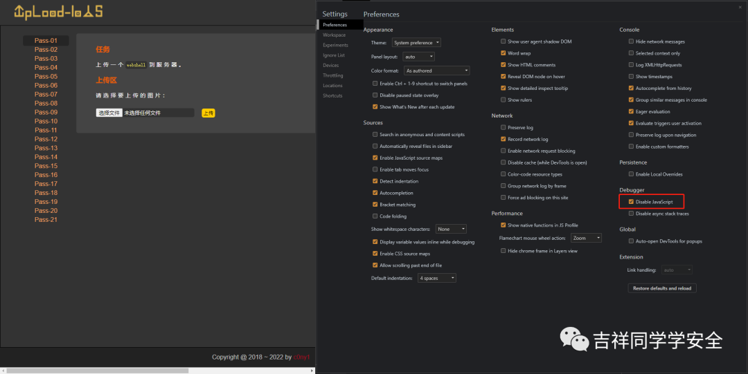 发现pass01就是典型的前端JS进行的文件检校,所以针对前端的JS绕过方式有二种: