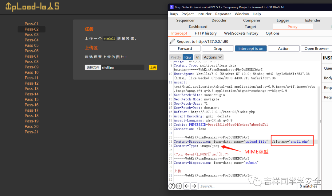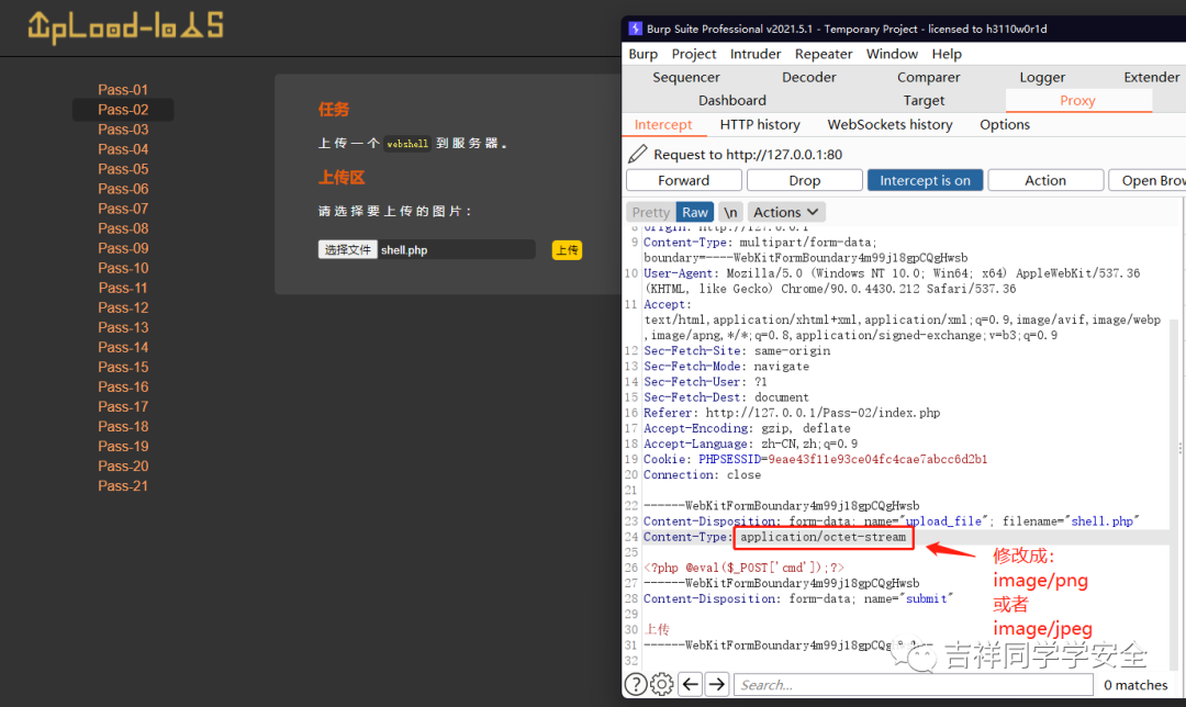 利用Burp Suit修改成允许的MIME类型进行文件上传