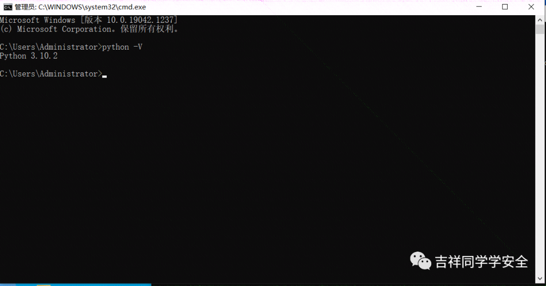 在命令行界面输入python -V查看环境变量是否安装成功,如果显示Python 3.10.2等字样者代表python环境安装成功