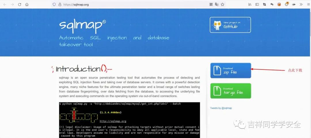 python环境安装成功后下载sqlmap工具,sqlmap下载地址:https://sqlmap.org/