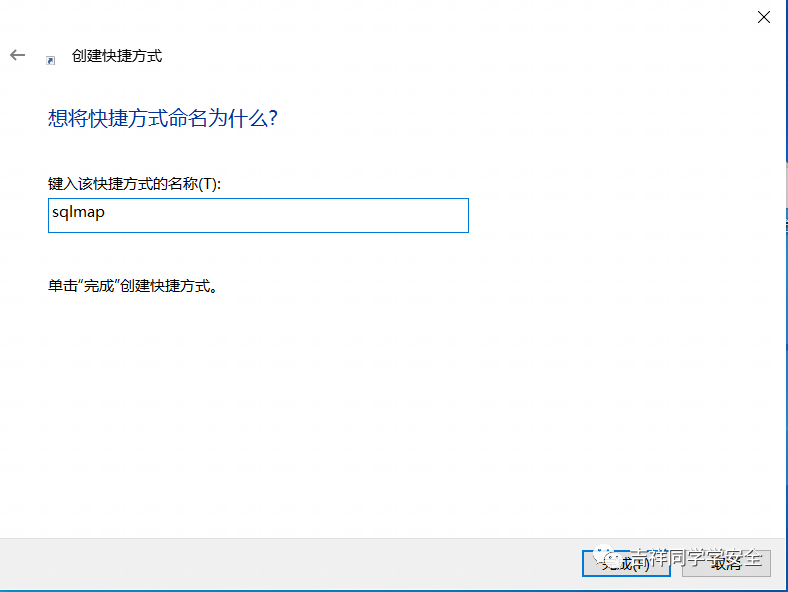 3、点击下一页,给快捷方式取名字,为了方便辨认我们命名为sqlmap