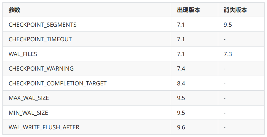②一个流量高峰可能会导致backend极速生成wal日志,可能会将wal段数量增加到2 * checkpoint_segments + 1以上。