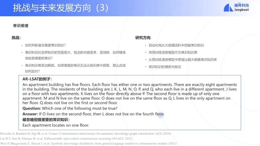 最后聊一下挑战和未来发展方向。首先是few-shot learning。借鉴迁移学习,转换从其他类似任务学到的推理能力,或者合成一些数据进行数据增强。