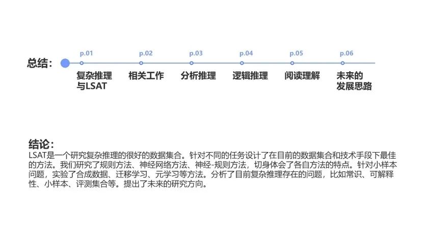 总结一下,本讲座研究了LSAT三类推理问题。应用了符号方法、神经方法和混合方法。取得了一些进展。