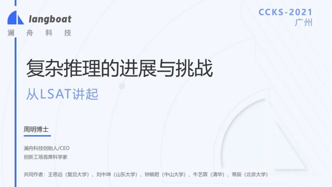 今天介绍的是来自澜舟科技的周明博士在CCKS-2021的报告《复杂推理的进展与挑战——从LSAT讲起》。