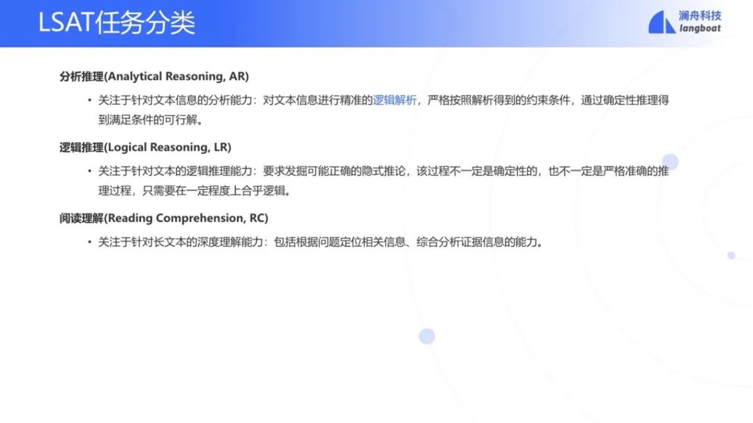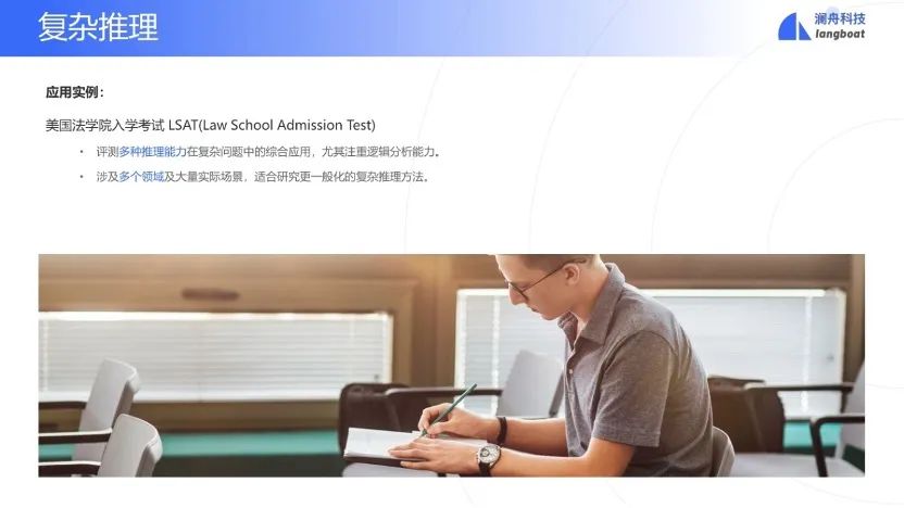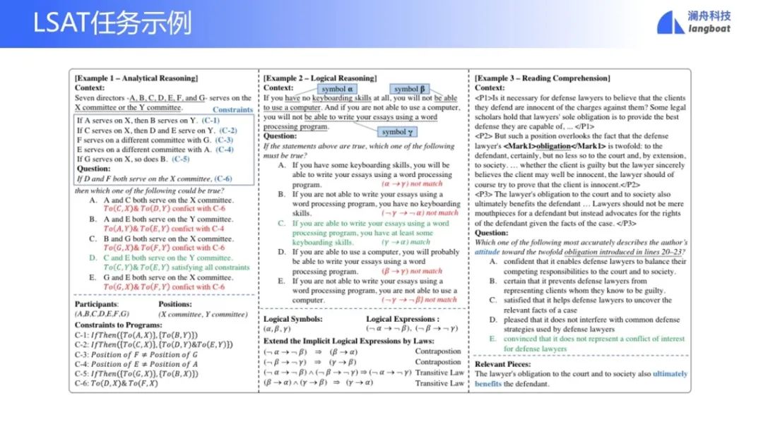其中LSAT就是一个复杂推理的实例,LSAT是美国法律院校的入学考试,它考察学生的综合推理能力,涉及到多个领域。