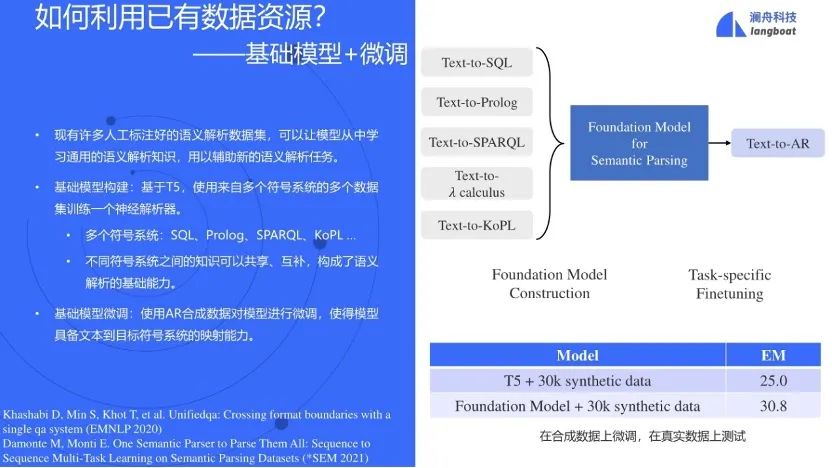 此外,有不少语义解析的数据集也可以利用,如Text-to-SQL,Text-to-Prolog等等,训练一个基于T5的模型,使这个模型是一个拥有自然语言的逻辑理解能力的foundation model[9],最后用AR数据集finetune即可。