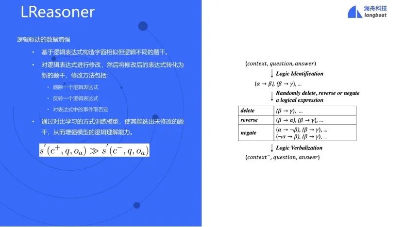 另外,模型也使用了逻辑驱动的数据增强。增加一些看起来像但是逻辑不同的context。比如删除一个逻辑表达式,对调一下逻辑符号的左右单元,取非等等。然后试用contrastive learning 来训练,增强逻辑理解能力。