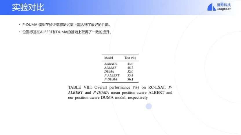 在LSAT-RC上的测试结果表明,position-aware的DUMA模型是最佳的模型。