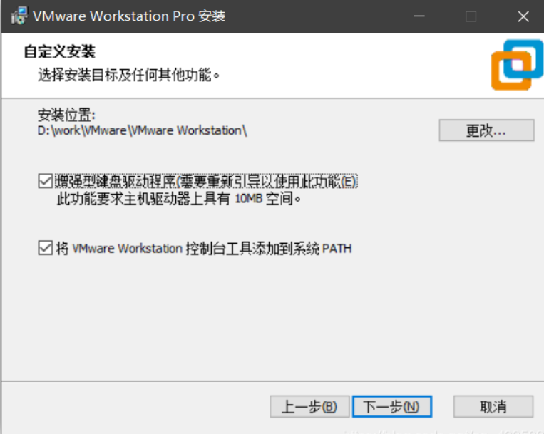 安装位置默认在 C 盘下,在这里我选择安装在 D 盘,安装路径尽量不要有中文。可勾选 增强型键盘驱动程序 ,此功能可更好地处理国际键盘和带有额外按键的键盘。