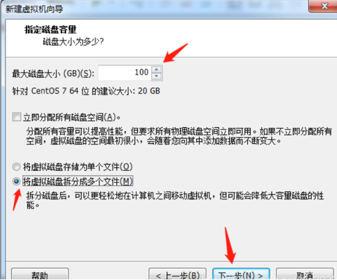 10、指定磁盘容量 → 100G(这是虚拟的不占主机内存)