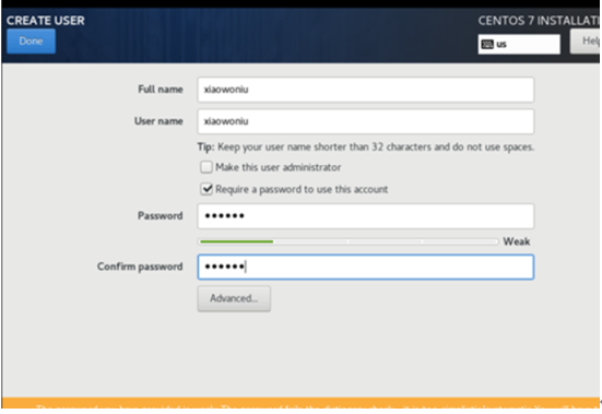 接下来可以创建用户(此处可以不进行创建,安装完成后进入root也可以重新创建)