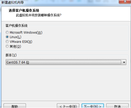 → Linux→ 版本选 CentOS 7 64位 → 下一步,注意:版本一定要对应镜像文件版本。