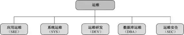 运维的工作方向比较多,随着业务规模的不断发展,越成熟的互联网公司,运维岗位会划分得越细。当前很多大型的互联网公司,在初创时期只有系统运维,随着规模、服务质量的要求,也逐渐进行了工作细分。一般情况下运维团队的工作分类(见图1-1)和职责如下。