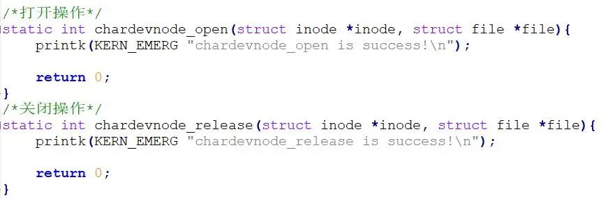 由于在本例中不使用read()、write()和llseek()等函数,所以可以不用写这些文件操作函数的具体实现。