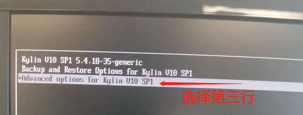 1、系统启动时,选择“Advanced options for kylin v10”(如下图所示)