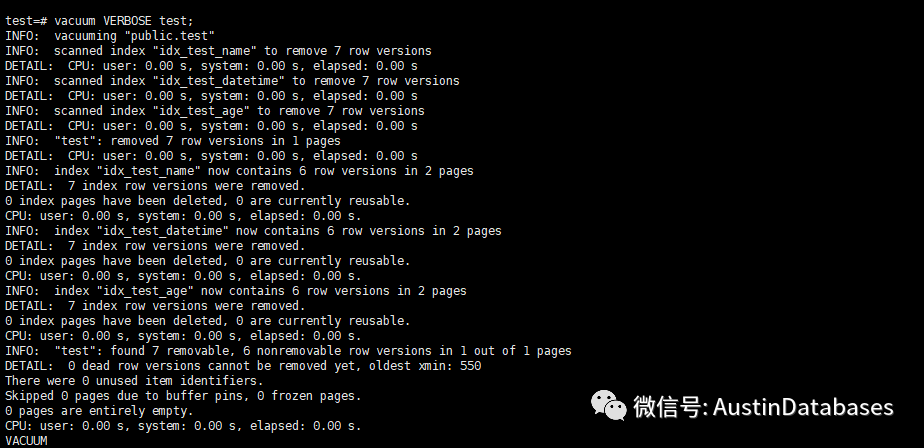 通过命令我们也可以看到 vacuum 后的空间回收了,并且页头也重新标记了次页面的容量,但指针是不在回收了。