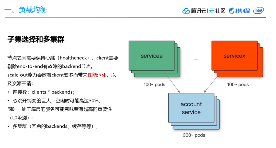 负载均衡具体分成两个方向,一个是前端负载均衡,另一个是数据中心内部的负载均衡。