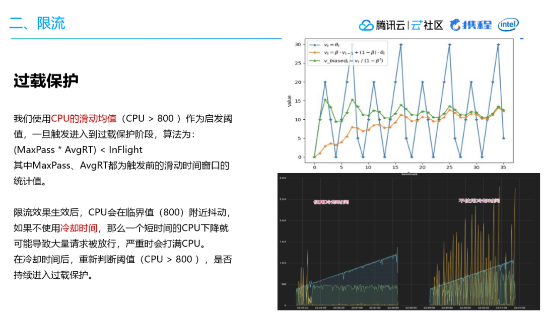 我们使用 CPU 的滑动均值(CPU>800 )作为启发阈值,一旦触发就进入到过载保护阶段。
