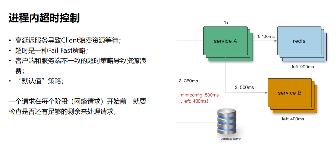 进程内的超时控制,关键要看一个请求在每个阶段(网络请求)开始前,检查是否还有足够的剩余来处理请求。