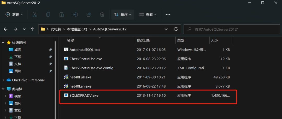 注:如果没有此文件,可以先解压单机版数据库自动安装包(也可自行在网络上下载SQL SERVER 2012的安装镜像)